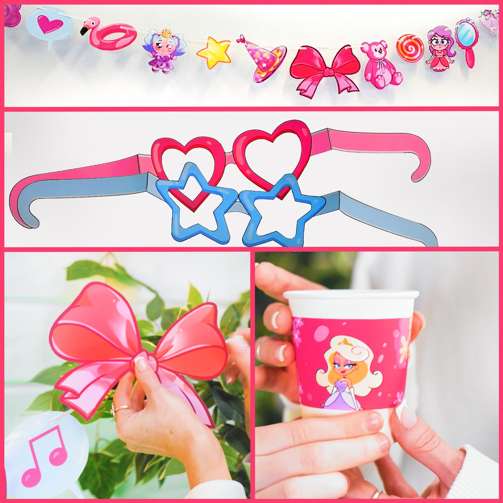 Doll Birthday Party Set , Printable Pink Party Decor ,Doll Theme Girls Birthday Decorations , Instant Download