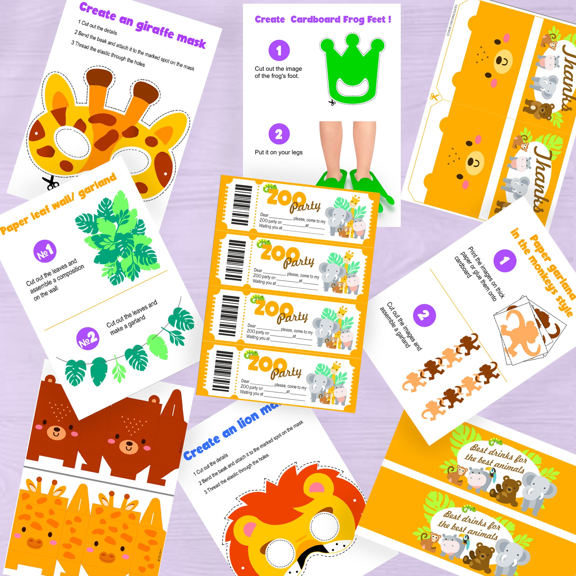 Zoo Party Birthday Set | Printable Jungle Animal Party Decorations, Safari Theme Party Kit, Kids Birthday Decor , Instant Download